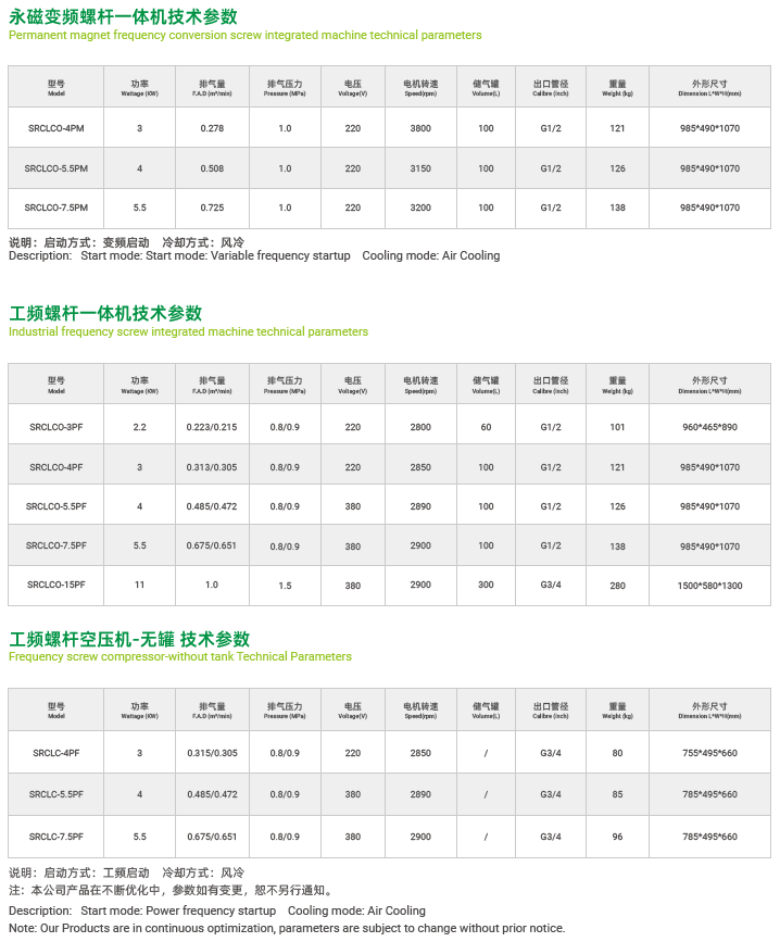 螺桿空壓機(jī)主機(jī)頭正常使用、保養(yǎng)下保修貳年,整機(jī)及電氣部分保修壹年(保養(yǎng)耗材除外);
